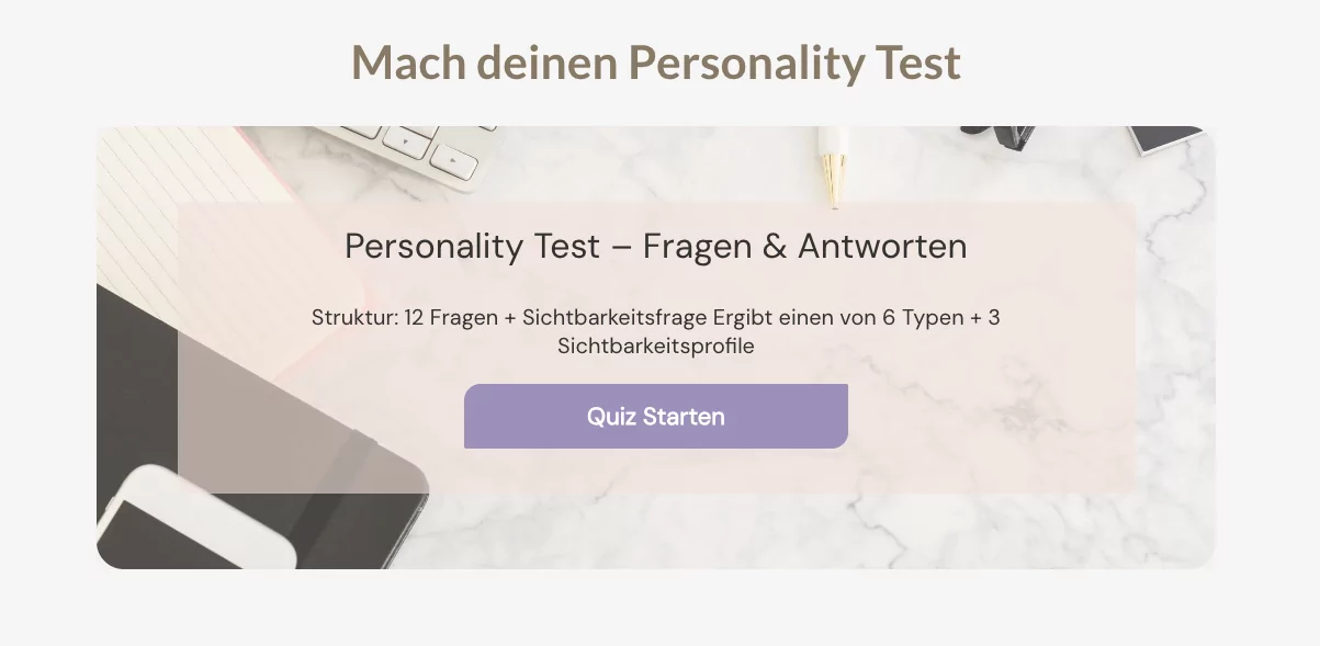 - Einen von 5 Persönlichkeitstypen (z. B. Creator, Visionär, Investor…)